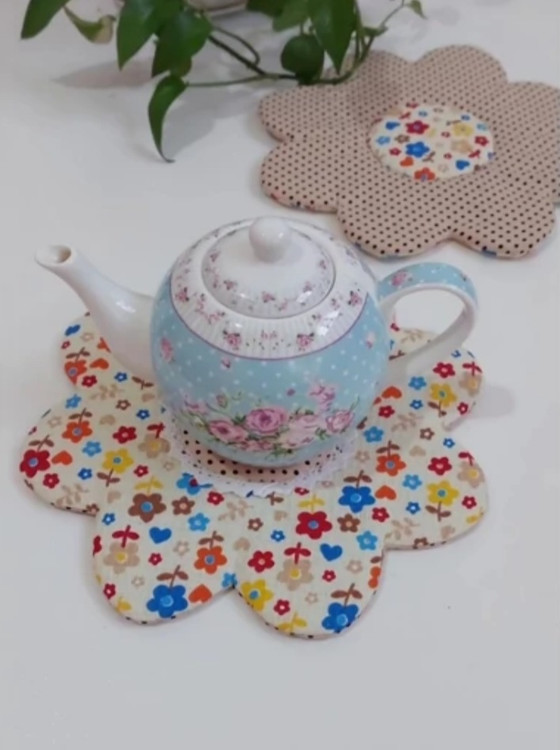 زیر قوری طرح گل قابل استفاده به عنوان زیر قوری یا زیر قابلمه ای دوخته شده با پارچه نسوز